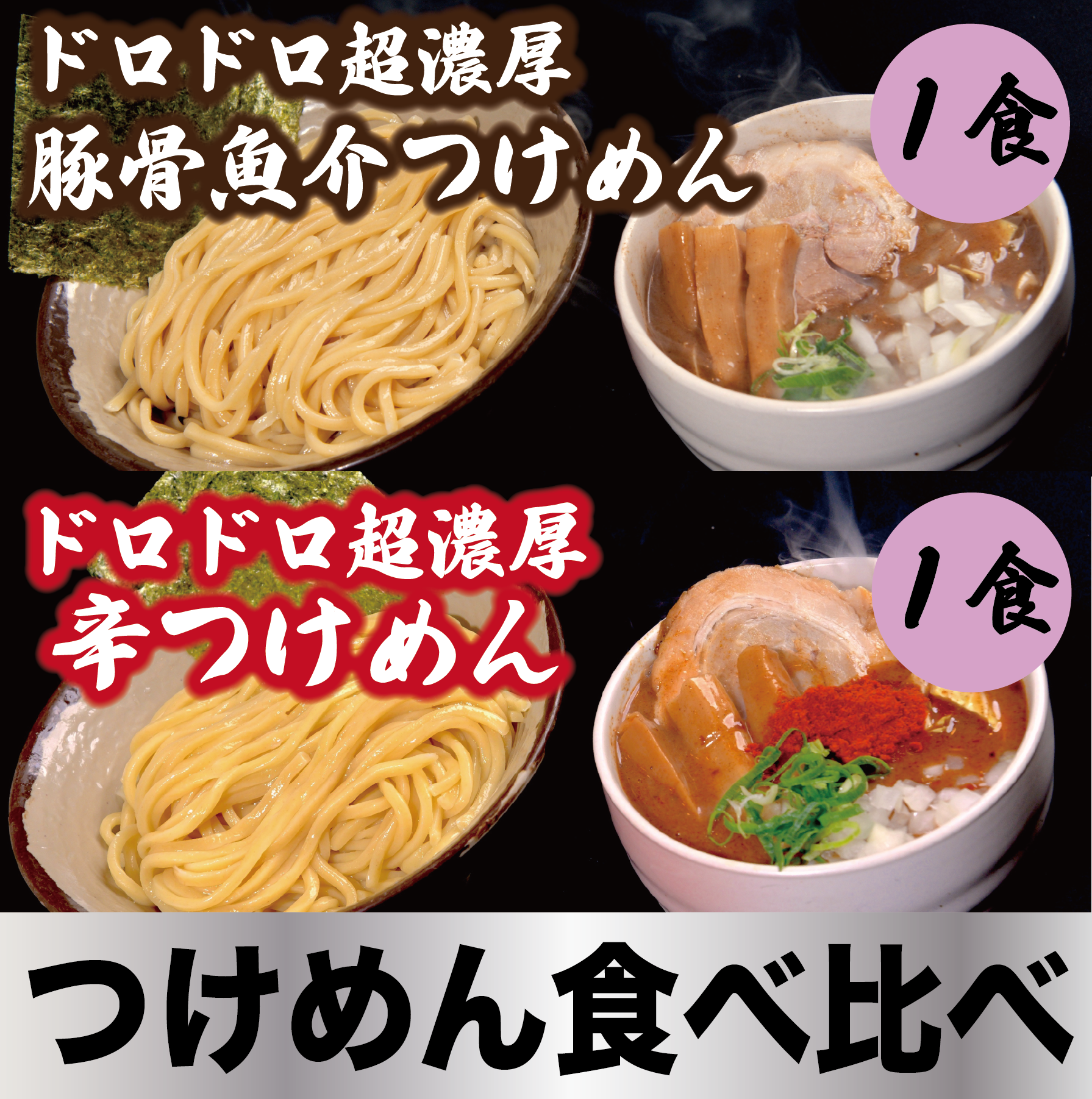 【つけめん食べ比べ】ドロドロ超濃厚 豚骨魚介つけめん1食/ドロドロ超濃厚 辛つけめん1食